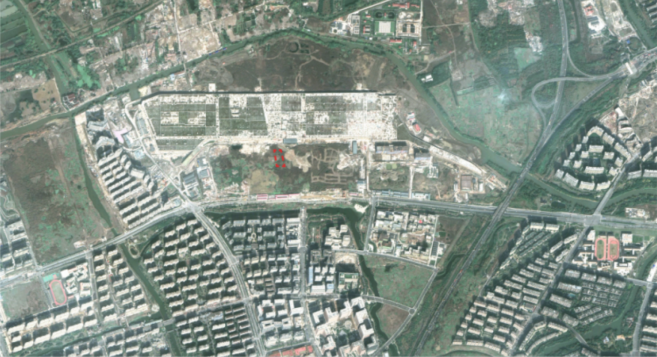 上下圖分別為:2015年&2018年項(xiàng)目所在地的航空衛(wèi)星圖,標(biāo)紅區(qū)域?yàn)轫?xiàng)目具體位置 / 圖源?大屋頂文化